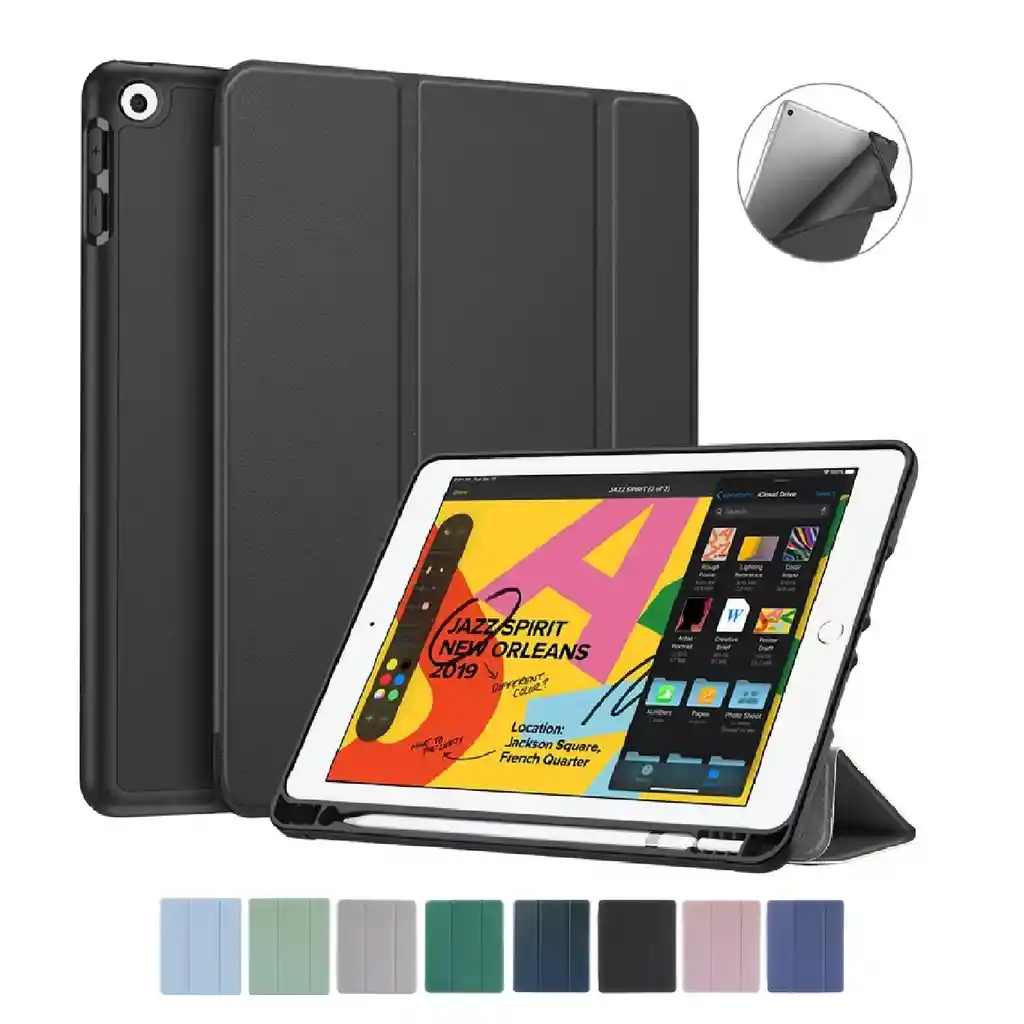 ESTUCHE PROTECTOR TIPO SMART COVER MAGNÉTICO EN TPU PARA IPAD 10.2 7ª, 8ª y 9ª GENERACION CON ESPACIO PARA EL APPLE PENCIL + VIDRIO PROTECTOR CERAMICO CARACTERÍSTICAS PRINCIPALES: PROTECTOR SMART COVER MAGNETICO Estuche Magnético con función Wake up que bloquea/desbloquea el iPad con la tapa. Protector Tipo Smart Case - Backover antideslizante. Protege la parte de adelante y de atrás del iPad, de rayaduras, golpes y otros daños del uso diario. Diseño Moderno ultradelgado y antideslizante, liviano y fácil de Usar! VIDRIO PROTECTOR CERÁMICO ANTI CHOQUE: Inastillable, Irrompible. Antihuella Dureza 9H para una máxima protección contra arañazos e impactos. Aproximadamente 0.30 mm de grosor para mayor durabilidad y confiabilidad. Transparencia 100%. Revestimiento oleofóbico resistente a las manchas y fácil de limpiar. Fácil aplicación, se instala sin problemas y sin burbujas. Recorte de precisión para el botón de inicio. Recorte de seguridad suave alrededor de los bordes. Protección inigualable para la pantalla de su iPad. COMPATIBILIDAD: iPad 10.2 7a Gen: A2197-A2200-A2198 iPad 10.2 8a Gen: A2270-A2428-A2429-A2430 iPad 10.2 9a Gen: A2602-A2604-A2603-2605 El Modelo de su Ipad lo puede encontrar en la parte de atras de su ipad, debajo del logo de apple, es un código de 4 dígitos precedidos por la letra A (AXXXX) POR SU COMPRA RECIBIRÁ: 1x Estuche Protector Tipo Smart Cover Para Ipad 10.2 7a, 8a, 9a Generacion. 1x Protector Vidrio Templado Cerámico