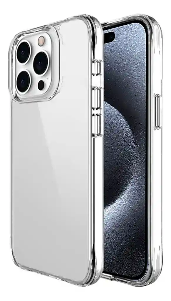 Estuche Antichoque Para iPhone 15 Pro space Pro En Transparente. Características: Anti-rayas. Los bordes superior e inferior del marco de TPU se elevan 0,4 mm por encima de la parte posterior de la pc (policarbonato) para que no se raye cuando se coloca el teléfono boca arriba. Tecnología de botones independientes. Los botones cromados de tecnología independiente que se presionan fácilmente le brindan una sensación suave de retroalimentación de botones. Protección. La fusión de dos materiales cualitativos: TPU suave y plástico duro fusionados en una capa resistente, no solo brindan una gran protección, sino que también permiten que la carcasa mantenga su apariencia transparente durante mucho tiempo.