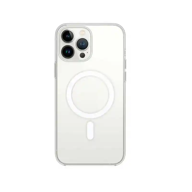 Estuche para iPhone 15 Pro Magsafe disponible en Transparente te permite proteger el equipo ademas gracias a sus imanes perfectamente alineados que incorporan los iPhone, esta funda se pone y quita con total comodidad y ofrece una carga inalámbrica mas rápido cuando tengas que cargar el iPhone, solo se debe colocar sobre la base de carga inalámbrica QI o acoplarle el cargador Magsafe con funda y listo. Características: - Los bordes superior e inferior del marco de TPU Se elevan 0,4 mm por encima de la parte posterior de la PC (policarbonato) para que no se raye cuando se coloca el teléfono boca arriba. - Los botones cromados de tecnología independiente que se presionan fácilmente le brindan una sensación suave de retroalimentación. - Fusión de dos materiales cualitativos : TPU suave y Silicona dura. - Los materiales de alta calidad, fusionado en una capa resistente, no solo brindan una gran protección, sino que también permiten que la carcasa mantenga su apariencia transparente durante mucho tiempo. - Puedes usar el estuche con la base de carga inalámbrica QI o acoplarle el cargador Magsafe.