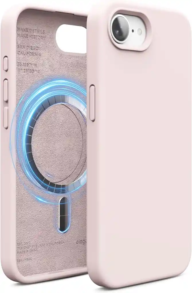 Estuche para iPhone 16e Elago Silicone en Rosado La funda magnética perfecta para tu teléfono compatible con MagSafe. Se diseñaron potentes imanes en la parte interior del estuche para garantizar que su teléfono se enganche al cargador y evite caídas. Características: - Se utilizó silicona líquida para hacer este increíble estuche. - El estuche agrega un excelente agarre y protección a su teléfono mientras agrega un toque de color. - Estuche que cubre todos los lados de su teléfono, incluida la parte inferior y los botones. - Compatible con tu iPhone 16e.