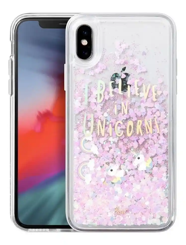 Estuche para iPhone X / XS disponible en diseño unicornio, arco iris y nubes blancas ; te permite proteger tu dispositivo es hora de saltar en el fantástico viaje con este caso de unicornios. El brillo lindo e iridiscente en forma de corazón que se encuentra dentro del estuche ofrece una escena soñadora y romántica para ti. Con los unicornios místicos flotantes y hermosos arcos iris. Incline su teléfono boca abajo y disfrute del espectáculo. Hecho a mano con poliuretano termoplástico suave y una cubierta dura de policarbonato, es extremadamente duradero. Un estilo de ensueño con protección de 360°, donde la moda se encuentra con la función. Características: - TPU y PC duraderos. - Unicornios de ensueño y coloridos arcoíris. - Glitter reflectante en forma de corazón. - Estilo y protección en uno estuche. - Cargador inalámbrico Qi compatible