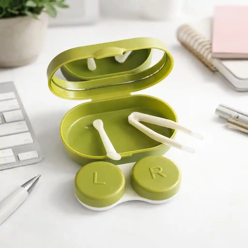 Estuche portátil para lentes de contacto con diseño práctico y tamaño compacto, ideal para llevar a cualquier lugar. Incluye accesorios útiles que facilitan el manejo y almacenamiento de los lentes de contacto en el día a día. ✓Contenido del kit: Estuche compacto Recipientes marcados L / R Pinza Aplicador ✓Fácil de transportar Gracias a su tamaño pequeño, puedes llevarlo en bolso, cosmetiquera o mochila. ✓Diseño funcional Permite mantener organizados los accesorios en un solo lugar.