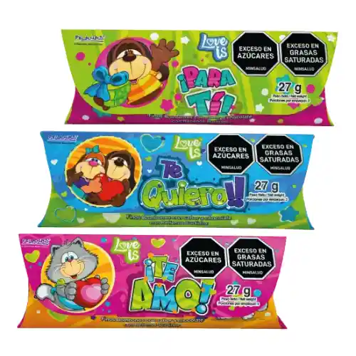 FINOS BOMBONES CON SABOR A CHOCOLATE CON RELLENOS SURTIDOS. EMPACADOS EN UNA LINDA CAJA CON ESTAMPADO DE PELANAS Y MENSAJES