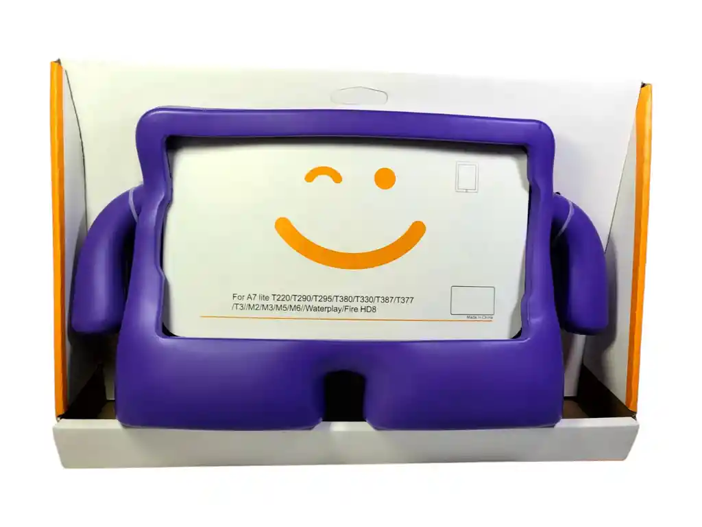 Estuche Protector Soporte Antigolpe IBUY Niños para tablet o iPad de 8.7" Disponible en Color Morado CARACTERÍSTICAS DESTACADAS: * Extremadamente duradero, material resistente al desgaste. * Permite mantener la tablet en una posición sin sostenerla. * Proporciona una excelente protección contra arañazos y golpes. * Acolchado, elegante, compacto y ligero. * Fácil de instalar y quitar. * Material: Espuma EVA (etilvinilacetato) * Color: Multicolor * Medidas: Alto: 17 cm Ancho: 23 cm * Peso en Kg: 0.11 Mantén tu Tablet como nueva, libre de rayones, mugre, protegida de golpes y que a la vez se vea estética; está la solución, pues ayuda a proteger tu Tablet de caídas y suciedad. Además, te ayudará a mantener la Tablet en la posición deseada, gracias a sistema de patas que permite poner la Tablet en cualquier superficie y que se sostenga sola. Ideal para niños por su alta resistencia. Producto garantizado. Somos Andicell Soluciones.