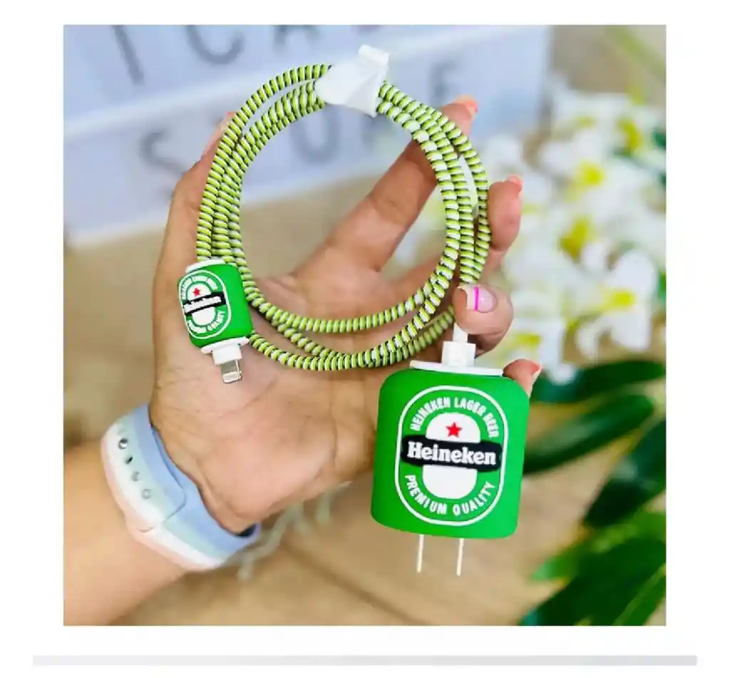Estuche Protector Cargador iPhone Cubo 20w ESPECTACULARES DISEÑOS MATERIAL DE SILICONA. EL PROTECTOR DEL CABLE ES DE COLOR BLANCO Protege tu cargador con estilo y funcionalidad! Nuestro protector de cargador está diseñado para mantener tu cable de carga seguro y libre de enredos así como el adoptador, prolongando su vida útil. Fabricado con materiales duraderos y resistentes, este protector no solo evita que el cable se doble o se rompa, sino que también agrega un toque de personalidad a tu dispositivo y protegiendo tu adaptador de rayones y golpes.