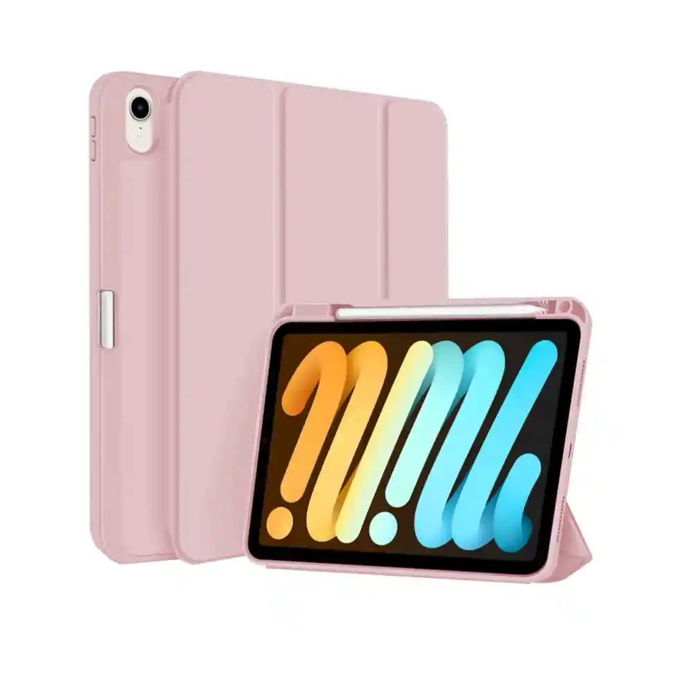 ESTUCHE PROTECTOR SMART COVER MAGNETICO PARA IPAD MINI 6 y IPAD MINI 7 (A17 PRO) EN CUERO SINTETICO Y MATERIAL TPU La protección perfecta que tu iPad Mini necesita con un diseño elegante y funcional! Esta funda combina la estética clásica del Smart Cover con una seguridad completa de 360 grados. CARACTERISTICAS PRINCIPALES: - Función Smart Cover (Wake/Sleep): La tapa magnética activa automáticamente tu iPad al abrirla y lo pone en reposo al cerrarla, conservando la batería. - Cuenta con espacio portalápices integrado para Almacenar el Apple pencil o cualquier otro lapiz de cualquier marca o referencia. - Protector Tipo Smart Cover - Backover antideslizante. - Protección Completa 360°: Protege tu dispositivo de rayaduras, golpes y el desgaste diario tanto en la pantalla como en la parte trasera. - Diseño Ultradelgado y Antideslizante: Mantiene el perfil delgado de tu iPad. Su acabado antideslizante (Backover) garantiza un agarre seguro y reduce el riesgo de caídas accidentales. - Tapa Delantera Elegante: Fabricada en cuero sintético de alta calidad, que ofrece un toque sofisticado y duradero. - Parte Trasera de TPU Blando: El TPU (Poliuretano Termoplástico) suave es un material de alta duración, super resistente y flexible, que facilita su colocación y ofrece una máxima absorción de impactos. - Recortes perfectamente alineados para un fácil acceso a los altavoces, botones y otros puertos - La cubierta frontal puede sostener su dispositivo en diferentes ángulos para satisfacer sus necesidades óptimas de visualización y escritura. COMPATIBILIDAD: - Ipad Mini 6 2021: A2567, A2568, A2569 - Ipad Mini 7 (A17 Pro) 2024: A2993, A2995, A2996 - El Modelo de su Ipad lo puede encontrar en la parte de atras de su ipad, debajo del logo de apple, es un codigo de 4 digitos precedidos por la letra A (AXXXX). POR SU COMPRA RECIBIRA: - 1x Estuche Protector Tipo Smart Cover Para Ipad Mini 6 Y 7 del color de su seleccion.