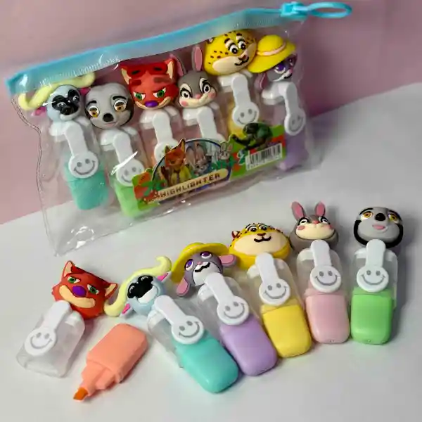 ESTUCHE RESALTADOR PASTEL X6 ZOOTOPIA 2