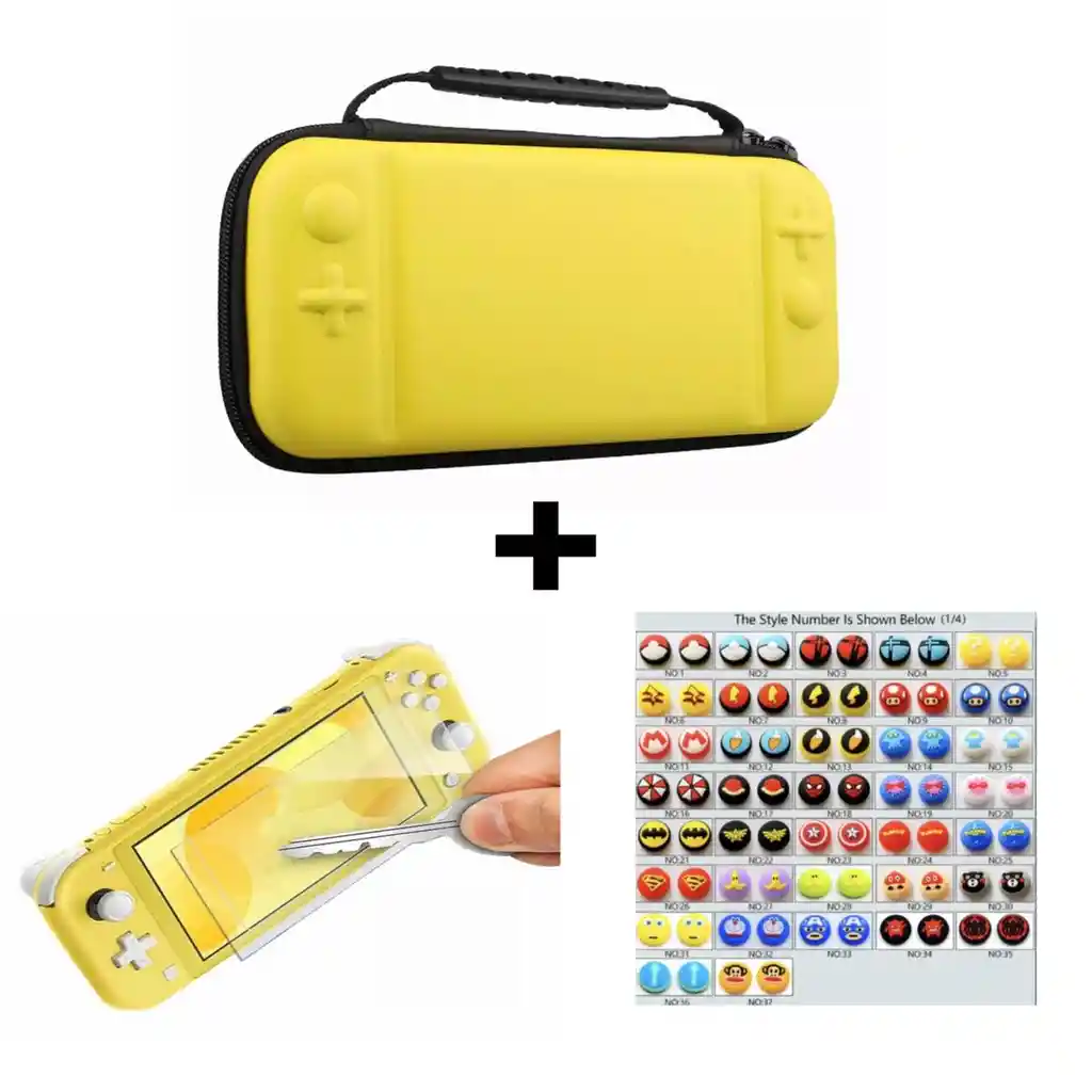 *¡¡BIENVENIDO A TONATEK!!* 1. CARACTERISTICAS DE LA COMPRA: 1.1 Esta compra incluye: - 1 Estuche Rigido Siwtch lite Color Amarillo + Vidrio Protector + 2 Grips 1.2 Características del producto: El combo de estuche rígido, vidrio protector y grips para Nintendo Switch Lite es una solución completa para proteger tu consola y mejorar la comodidad durante el juego. El estuche rígido color amarillo permite transportar y guardar la consola de forma segura, ayudando a protegerla de golpes, polvo y rayones cuando no está en uso o al momento de llevarla en bolsos o mochilas. El vidrio protector para pantalla brinda una capa adicional de protección contra rayones y marcas, manteniendo la visibilidad clara y el correcto funcionamiento de la pantalla táctil.