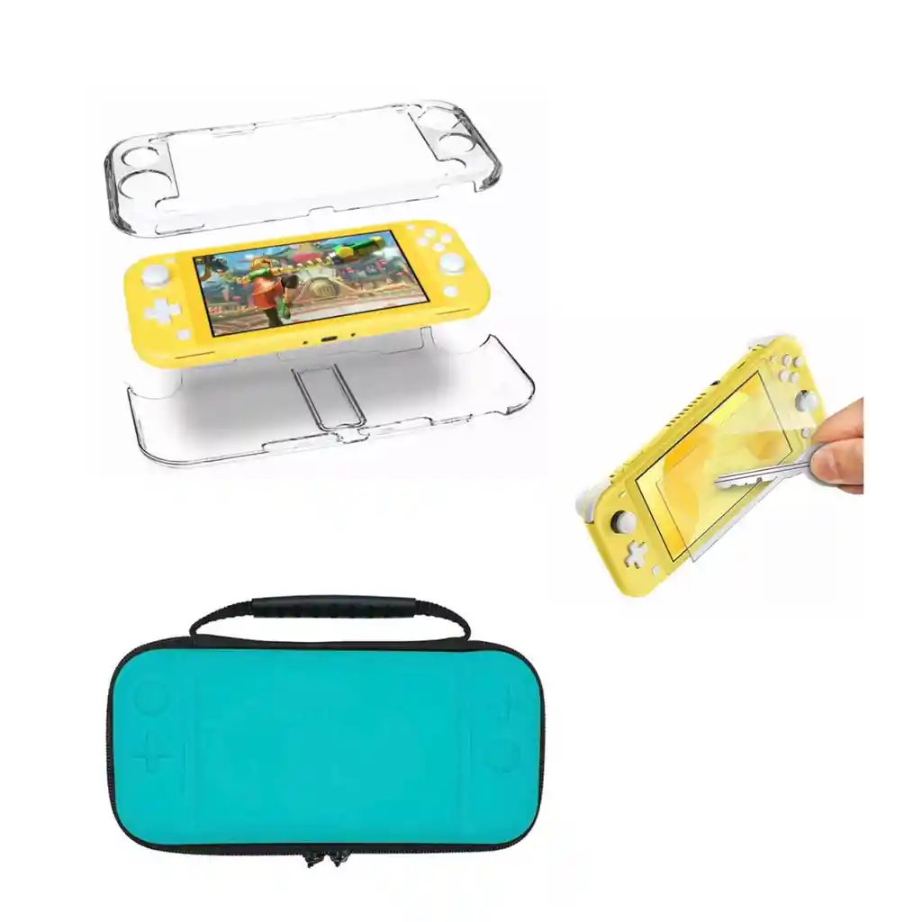 *¡¡BIENVENIDO A ATARISTATION!!* 1. CARACTERISTICAS DE LA COMPRA: 1.1 Esta compra incluye: - 1 Estuche Rigido Siwtch Lite Color Turquesa + Vidrio Protector + 2 Grips + Acrilico Trasparente 1.2 Características del producto: Mantén tu consola protegida y con mejor agarre con este completo kit de protección para Nintendo Switch Lite. Incluye un estuche rígido color amarillo y varios accesorios diseñados para cuidar tu consola y mejorar la experiencia de juego. El estuche rígido permite transportar tu consola de forma segura, protegiéndola de golpes, polvo y rayones. Además, el acrílico transparente protege la parte exterior de la consola, mientras que el vidrio protector cuida la pantalla. Los grips para joystick mejoran el agarre y la comodidad al jugar.