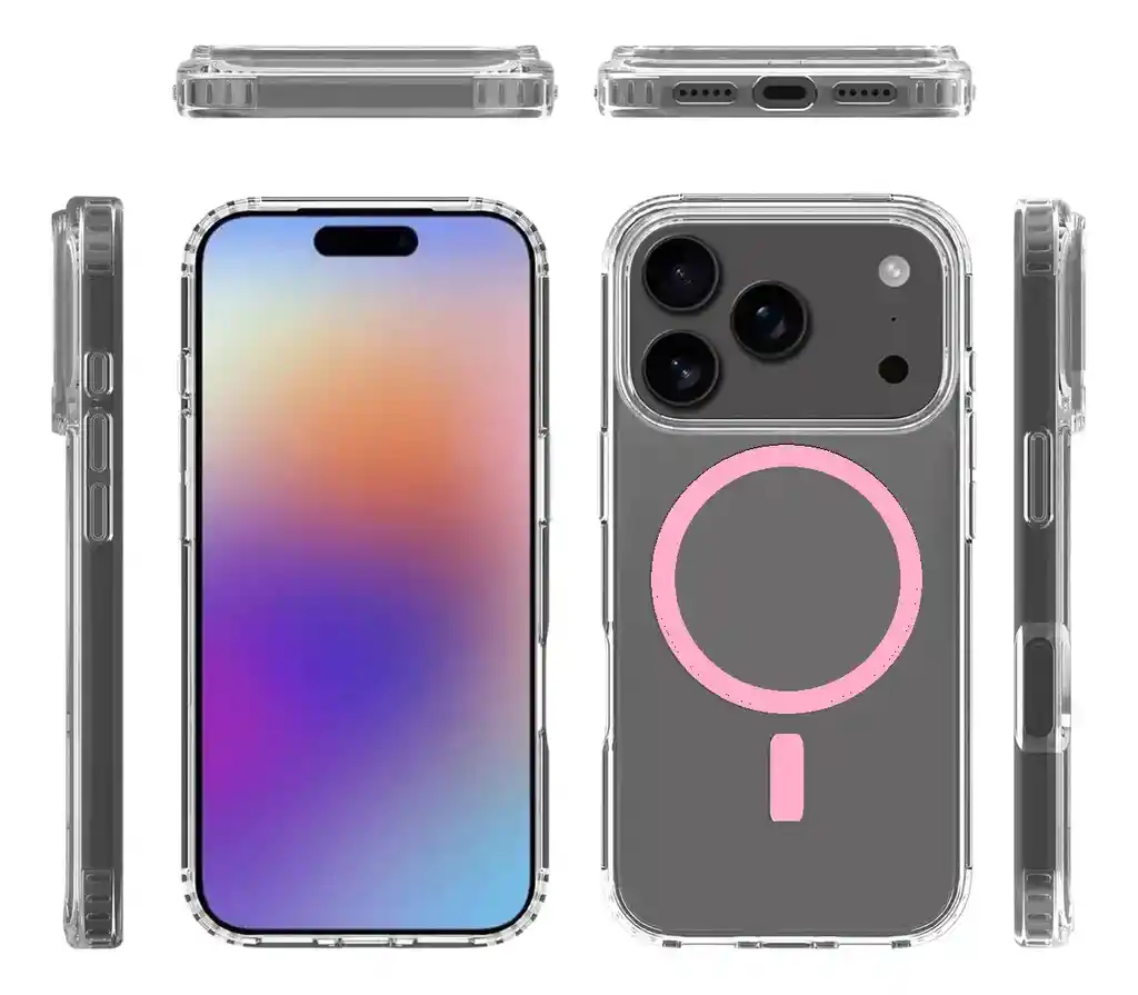 Estuche Transparente Magsafe Iphone 17 Pro Rosado