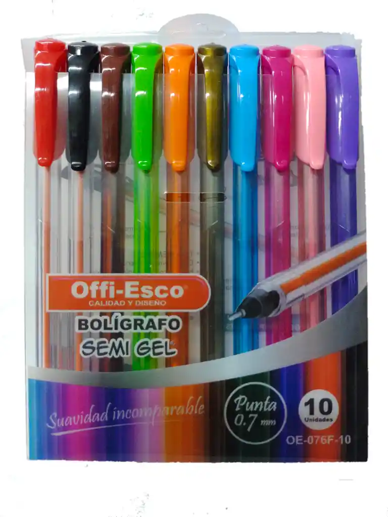 ESTUCHE DE 10 ESFEROS EN COLORES VARIADOS MARCA OFFIESCO, TINTA EN SEMIGEL