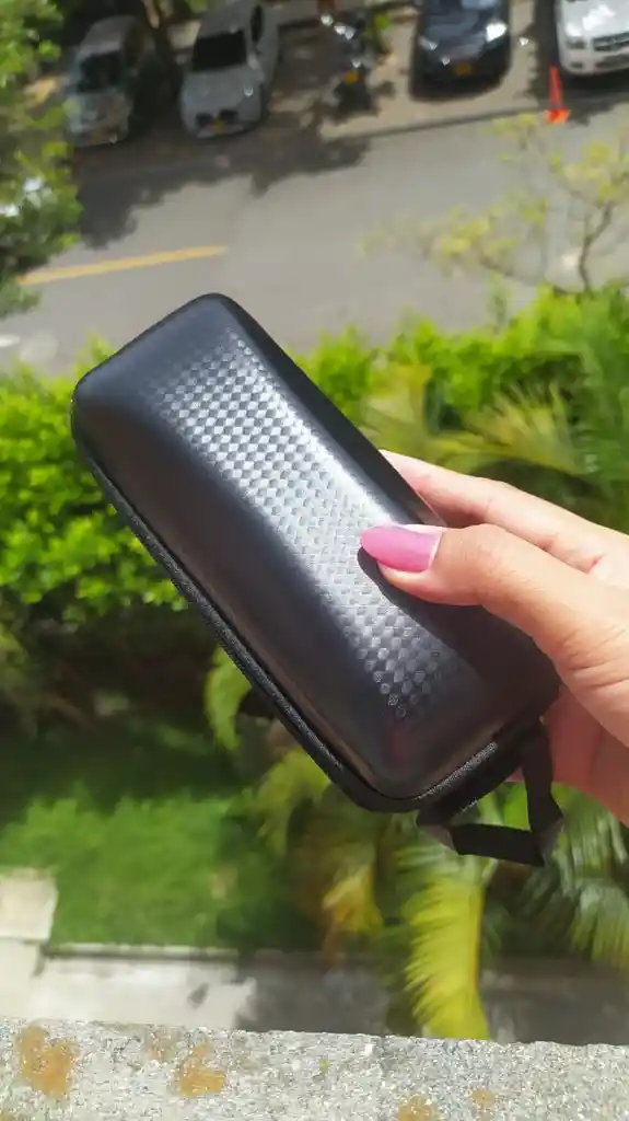 Estuche duro de corredera color negro, Se pueden guardar monturas grandes No apto para monturas curvas Con manilla para colgar en la mano.