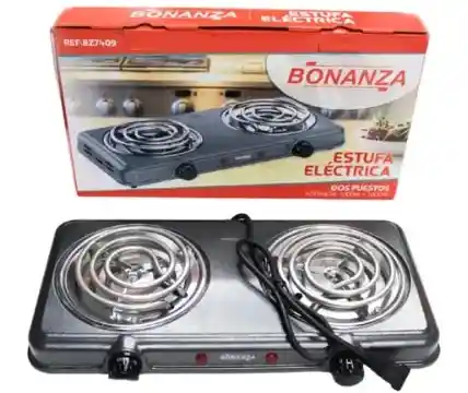 Estufa eléctrica portátil de 2 puesto, ideal para espacios pequeños y uso doméstico. Su diseño compacto permite transportarla fácilmente y utilizarla en cocinas, oficinas o viajes. ESPECIFICACIONES PRINCIPALES - Marca: Bonanza - Potencia: 2000 W - Tipo de alimentación: Eléctrica - Color: Negro - Número de puestos: 2 - Control ajustable 5 niveles de calor - Revestimiento antiadherente de fácil limpieza - Tiene control automático con termostato - Tamaño 43x21x6 cm RECOMENDACIONES DE USO Perfecta para preparar comidas rápidas y calentar alimentos. Se recomienda ubicarla sobre superficies planas y resistentes al calor. No sumergir en agua y limpiar únicamente cuando esté desconectada y fría. VENTAJAS DESTACADAS - Fácil de transportar y almacenar - Encendido manual seguro - Ideal para apartamentos, oficinas y viajes
