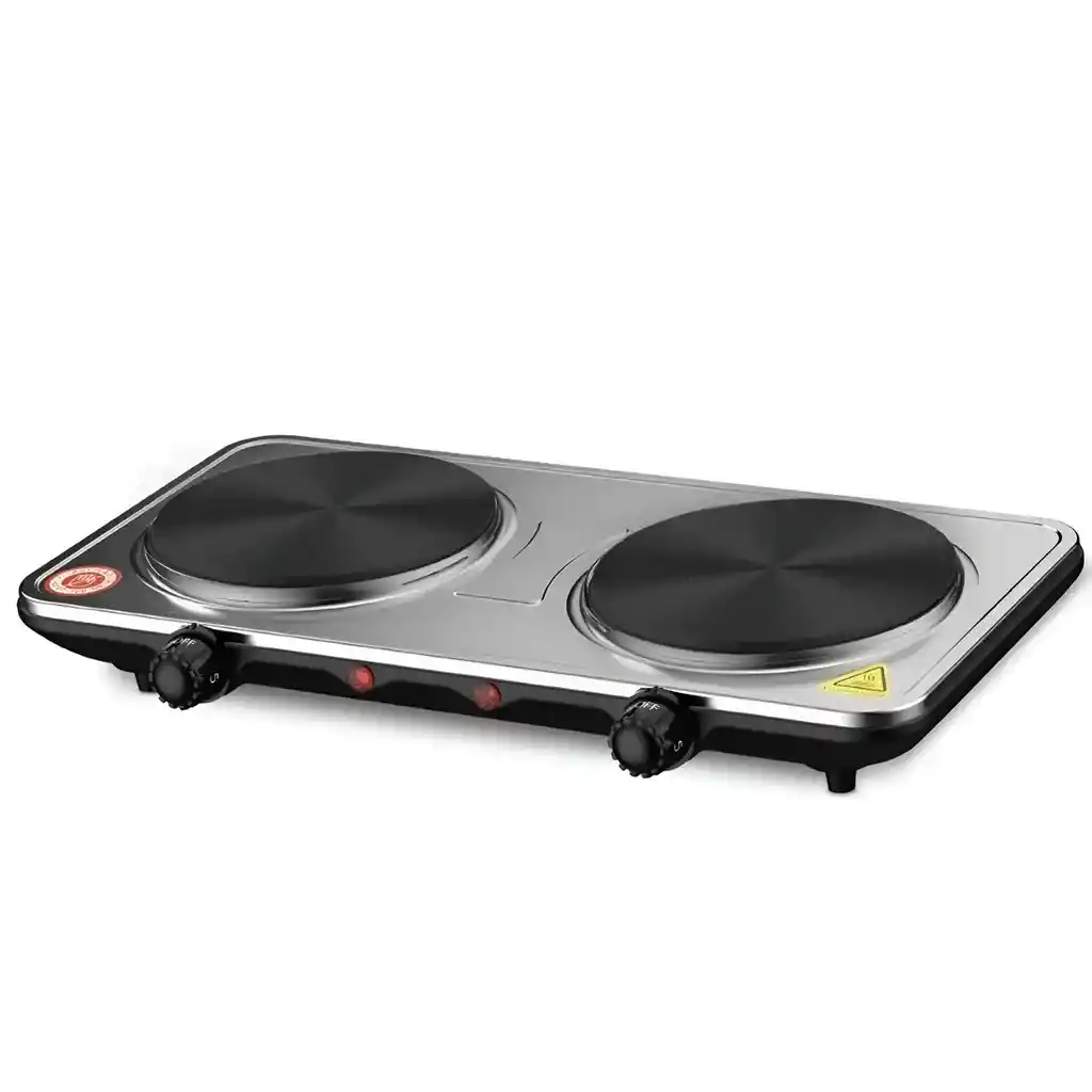Esta estufa eléctrica de dos puestos es la solución ideal para quienes buscan potencia y versatilidad en un diseño compacto, permitiendo cocinar múltiples platos de forma simultánea con total eficiencia. Fabricada con una superficie de acero inoxidable de alta calidad y quemadores de hierro fundido duraderos, ofrece una potencia total de 2000W distribuida en dos placas de calentamiento rápido que son compatibles con cualquier tipo de olla o sartén. Gracias a sus dos perillas de control de temperatura independientes con 5 niveles de intensidad y sus luces indicadoras de seguridad, garantiza un manejo preciso y sencillo para diversas preparaciones culinarias. Su estructura ligera y pies antideslizantes la convierten en el electrodoméstico perfecto para cocinas pequeñas, fincas, oficinas o como una estación de cocina auxiliar confiable y fácil de limpiar. FICHA TÉCNICA Producto: Estufa Eléctrica de Doble Quemador Material del cuerpo: Acero Inoxidable Material de los quemadores: Hierro fundido de alta durabilidad Potencia total: 2000W (1000W por cada puesto) Voltaje: 110V - 120V Niveles de calor: 5 niveles de temperatura ajustables por perilla Controles: 2 perillas independientes con termostato Seguridad: Protección contra sobrecalentamiento y luces indicadoras de encendido Dimensiones del producto: 42 cm (Largo) x 21 cm (Ancho) x 6 cm (Alto) Compatibilidad: Apta para todo tipo de recipientes (acero, barro, aluminio, etc.) Características adicionales: Pies de goma antideslizantes y diseño de fácil limpieza Garantía: 1 mes por defectos de fábrica POLÍTICA DE GARANTÍA Y RETRACTO Este electrodoméstico cuenta con 1 mes de garantía por defectos de fábrica; por favor revise el producto al recibirlo, ya que no aplica retracto ni garantía tras su uso. Dispone de máximo 5 días para reportar novedades (piezas faltantes o daños de transporte) y, para cualquier devolución, es indispensable entregar el producto en su empaque original en buen estado, con todas sus partes y documentos completos.