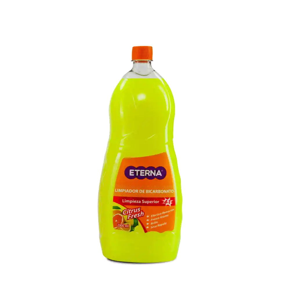 Limpiador Bicarbonato Eterna 2000ml-Verde Se trata de tu hogar, el principal y único espacio íntimo donde se convive tanto con familiares como con colegas del trabajo o de estudio. Por ello, es costumbre dedicarle una cantidad de tiempo adicional para lograr dar con los mejores productos para así mantenerla: aquellos que reúnen calidad, durabilidad y utilidad. El mejor amigo de cada hogar son todos los productos, herramientas, utensilios o artefactos que permiten realizar más fácil las tareas cotidianas, por otra parte, complementan el estilo y decoración de tu hogar. Los accesorios para tu hogar son importantes para que encuentres confort y seguridad al estar con quienes más amas; es por ello que debes asegurarte de tener la mejor calidad en cada uno de sus detalles. En esta oportunidad, la oferta es sobre un limpiador de bicarbonato elaborado con tensoactivo no iónico, protector UV, secuestrante, antidepositante, ayudante de brillo, preservante, fragancia, colorante, bicarbonato de sodio y agua. Este es ideal para pisos, gabinetes y paredes. Además, elimina la suciedad de manera efectiva. Deja aroma fresco y brinda brillo y es de secado rápido. Para cocina, baños y superficies en general con aroma citrus fresh. Su presentación es en botella con un contenido de 2000ml. Esta marca te ofrece un amplio catálogo con productos de necesidad, confiables y durabilidad que podrán convertirse en tus aliados a la hora de realizar tus actividades diarias sin problema alguno. Limpiador de bicarbonato Elaborado con tensoactivo no iónico, protector UV, secuestrante, antidepositante, ayudante de brillo, preservante, fragancia, colorante, bicarbonato de sodio y agua Ideal para pisos gabinetes y paredes Elimina la suciedad de manera efectiva Deja un aroma fresco Brinda brillo y es de secado rápido Multisuperficie Para cocina, baños y superficies en general Aroma citrus fresh Presentación en botella Contenido de 2000ml