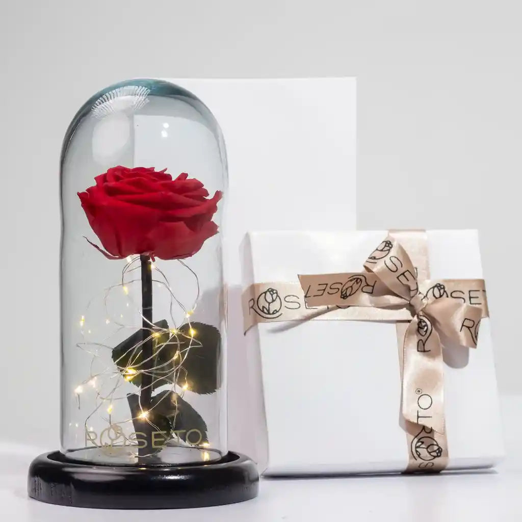 Rosa preservada con luces
