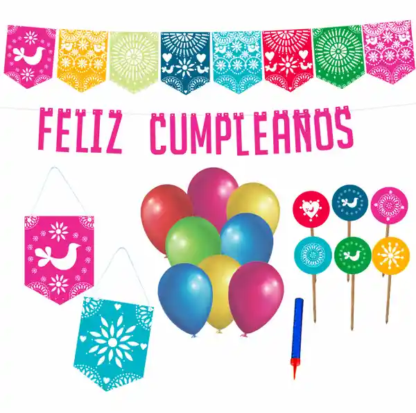 Incluye. Tira de 8 Banderines Impresa 1 Unidad + Guirnalda Feliz Cumpleaños 1 Unidad + Globo R12 Del Color de la Fiesta 8 Unidades + Banderines Decorativos 2 Unidades + Toppers Para Decorar 6 Unidades + Vela Volcán 1 Unidad. El Color de Los Globos Varía Según Disponibilidad