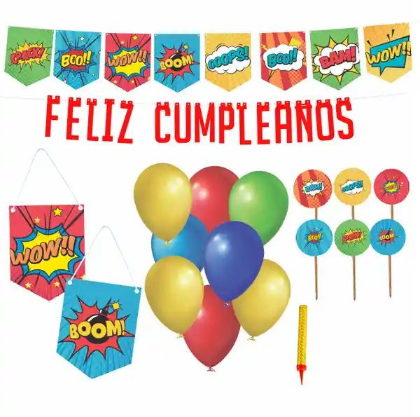 Incluye. Tira de 8 Banderines Impresa 1 Unidad + Guirnalda Feliz Cumpleaños 1 Unidad + Globo R12 Del Color de la Fiesta 8 Unidades + Banderines Decorativos 2 Unidades + Toppers Para Decorar 6 Unidades + Vela Volcán 1 Unidad. El Color de Los Globos Varía Según Disponibilidad