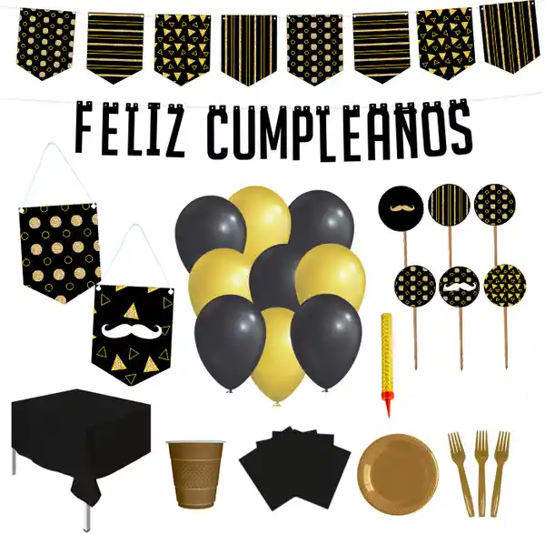 Incluye. Tira de 8 Banderines Impresa 1 Unidad + Guirnalda Feliz Cumpleaños 1 Unidad + Globo R12 Del Color de la Fiesta 10 Unidades + Banderín Decorativo 2 Unidades + Toppers Para Decorar 6 Unidades + Vela Volcán 1 Unidad + Mantel Rectangular Plástico 1 Unidad + Plato de 6 Pulgadas 10 Unidades + Vaso de 7 Onzas 10 Unidades + Servilletas Pequeñas 20 Unidades + Tenedor de Plástico 12 Unidades. El Color de Los Globos, Mantel, Platos, Vasos, Servilletas y Tenedores Varía Según Disponibilidad.