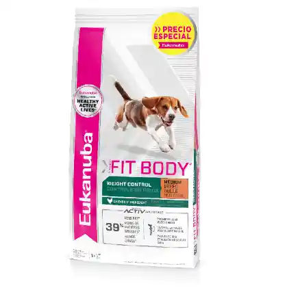 Eukanuba Medium Adult Fit Body, Este Alimento Para Perros Ofrece el Pollo Fresco Como Principal Fuente de Proteína y se Compone de Otros Ingredientes Naturales Que Generan Una Dieta Saludable y Nutritiva Para Que tu Peludo se Sienta Más Vital y Feliz.