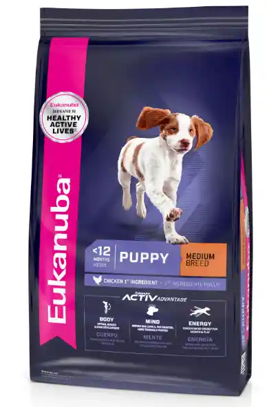 Nuestra exclusiva fórmula Growing Puppy está elaborada para promover la condición corporal óptima y promover el desarrollo y el crecimiento sano. Apto para cachorros de razas medianas hasta los 12 meses. Nuestra croqueta sabrosa rica en pollo fresco ha sido adaptada especialmente para satisfacer las necesidades de los perros de raza mediana. Además su forma hexagonal especial también ayuda a cuidar los dientes de tu perro. Desarrollado por nutricionistas aprobado por veterinarios y recomendado por los mejores criadores EUKANUBA proporciona toda la nutrición que tu perro necesita para una vida larga y sana. Cuando llega el momento para tu cachorro de cambiar fórmula nuestros expertos recomiendan alimentarlo con nuestra receta Active Adult para perros de razas medianas. BENEFICIOS CLAVE: -DHA para favorecer el aprendizaje de los cachorros y ser más trainables. -Prebióticos FOS y pulpa de remolacha para favorecer una digestión saludable. -Vitaminas E y C antioxidantes para ayudar al sistema inmune. -Calcio para ayudar al desarrollo óseo. -Fuentes naturales de Omega 6 y 3 para una piel y un pelo sanos. -Una forma de croqueta especial con DentaDefense para mantener los dientes limpios y sanos