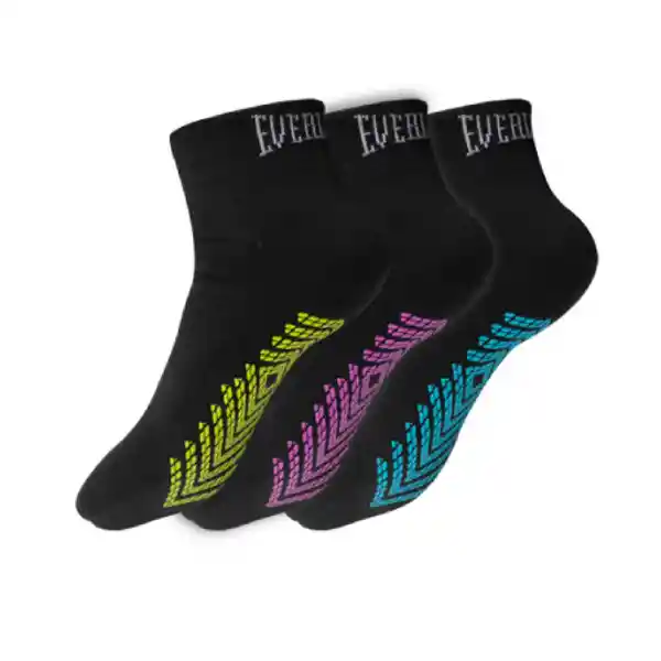 Set Everlast Contiene 3 Pares. Deportivas. Talla: 9-11 Dama. Color Disponible: Negras y Blancas. Tipo: Tobillera. Composición: 85% Algodón 13% Poliéster 2% Elastano. Agarre de Arco Para un Ajuste Óptimo. Construcción Liviana Para un Mayor Rendimiento. Terry Acolchado Para Mayor Comodidad. Pads Anti Resbalantes.