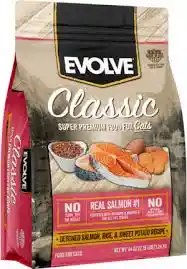 Evolve Classic Salmon, Rice, & Sweet Potato es un alimento para gatos de gran sabor hecho con salmón, arroz integral, patatas dulces, cebada, guisantes, zanahorias, arándanos. Este alimento no contiene trigo, maíz ni soja y produce un delicioso aroma que su gato encontrará irresistible. Porque nos importa la calidad de nuestra comida para gatos, hemos elegido que el salmón auténtico sea el ingrediente número 1. Esta formulación única engloba todos los ingredientes necesarios para mantener a su gato feliz, sano y con energía. Arándanos como antioxidante para mejorar la salud del tracto urinario Pulpa de tomate y celulosa para disminuir la formación de bolas de pelos Algas marinas secas que aportan minerales y vitaminas fundamentales Pulpa de remolacha y Yucca Schidera para mejorar el sistema digestivo Arroz integral como carbohidrato principal, contiene muchos nutrientes. No incluye colorantes, preservantes, saborizantes, ni sub productos de proteina No contiene maíz, trigo ni soja con el fin de evitar incompatibilidades.
