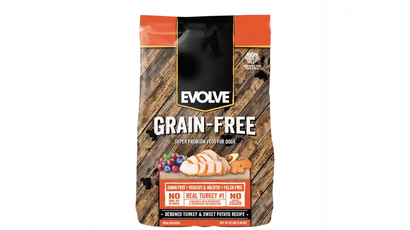 Evolve Grain Free Pavo es una comida para perros en cualquier etapa de su vida (avalado por AFFCO) que no contiene granos. Su deliciosa fórmula está hecha a base de proteína de pavo para que tu perrito tenga músculos fuertes y magros.