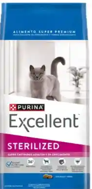 Descripción Los gatos castrados, sean adultos o estén en crecimiento necesitan una nutrición especifica. PURINA® EXCELLENT® STERILIZED es un alimento completo y balanceado que ofrece una combinación de ingredientes adecuada para obtener una condición corporal ideal, ayudando en el control de bolas de pelo y manteniendo un tracto urinario saludable. Balance adecuado de ingredientes para un tracto urinario saludable: Una óptima combinación de ingredientes que ayuda a mantener un pH adecuado en la orina, contribuyendo a la reducción de la formación de cálculos y cristales, y al mantenimiento de un tracto urinario saludable. Contribuye a una condición corporal ideal: Con fuentes de proteínas de elevada digestibilidad que garantizan el aporte de aminoácidos esenciales, ayudando a mantener músculos fuertes y sanos. Favorece el control de bolas de pelo: Con probiótico natural y fibras naturales que ayudan a eliminar las bolas de pelo producidas al lamerse.