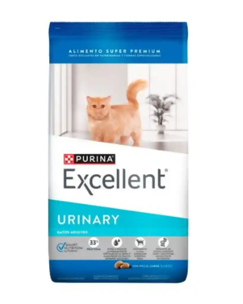 PURINA® Excellent® Adulto Urinary Pollo y Arroz, ofrece una nutrición especializada para los gatos con un sistema urinario sensible, formulada a base de proteínas de alta digestibilidad, para ayudar a mantener el tracto urinario saludable y colaborar en reducir la formación de cristales en la orina.