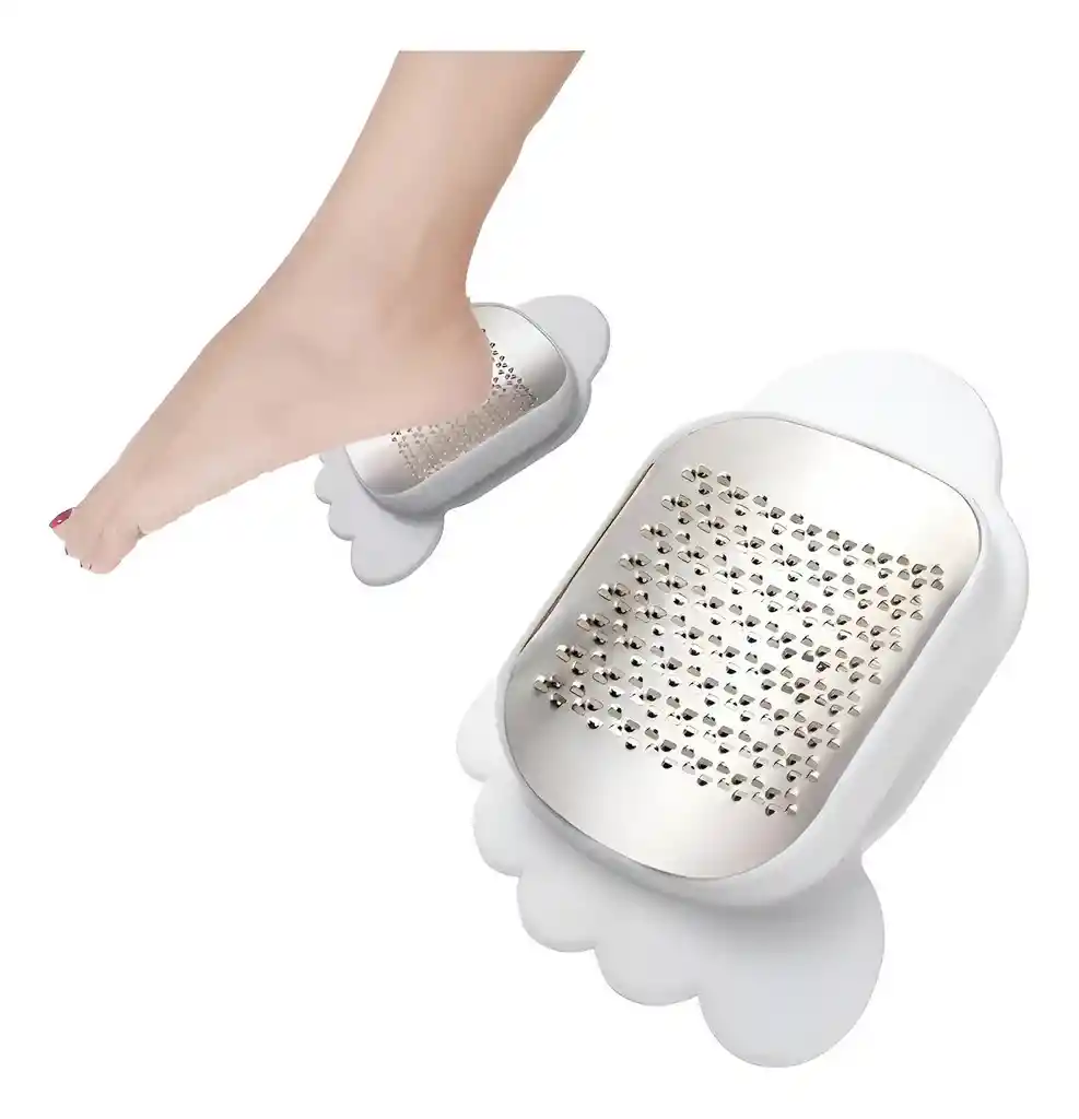 Este práctico exfoliador de pies está diseñado para ofrecer una pedicura profesional desde la comodidad de tu hogar, eliminando eficazmente callosidades y piel muerta gracias a su superficie de acero inoxidable de alta calidad. Su diseño ergonómico en forma de pie no solo es estético, sino funcional, ya que cuenta con cuatro ventosas de fuerte succión en la parte posterior que permiten fijarlo firmemente al piso o a la pared de la ducha, facilitando un uso seguro y sin manos. Es un accesorio resistente al agua, fácil de lavar y duradero, ideal para mantener tus pies suaves, sanos y renovados con el mínimo esfuerzo durante tu rutina diaria de baño. FICHA TÉCNICA Producto: Exfoliador de pies manual Material de la superficie: Acero inoxidable de grado quirúrgico Material de la base: Plástico ABS de alta resistencia Dimensiones: 14 cm de largo x 10 cm de ancho x 3 cm de alto Sistema de fijación: 4 Ventosas de succión integradas Voltaje: No aplica (Uso manual) Peso aproximado: 120 gramos Resistencia: 100% Lavable y resistente a la corrosión Uso recomendado: Piel seca o húmeda (preferiblemente durante la ducha) Color: Blanco con placa metálica plateada POLÍTICAS DE GARANTÍA Nuestra garantía cubre un periodo de 30 días calendario contra defectos de fábrica exclusivamente. La garantía no será válida si el producto presenta señales de mal uso, golpes, modificaciones o si el desgaste es resultado del uso normal del acero inoxidable. Para hacer efectiva la reclamación, el producto debe devolverse en su empaque original y con todos sus componentes. Los costos de envío para trámites de garantía serán asumidos según las políticas vigentes de la plataforma. Tu satisfacción es nuestra prioridad; si recibes un artículo diferente al de la imagen o con daños físicos al momento de la entrega, por favor repórtalo de inmediato.