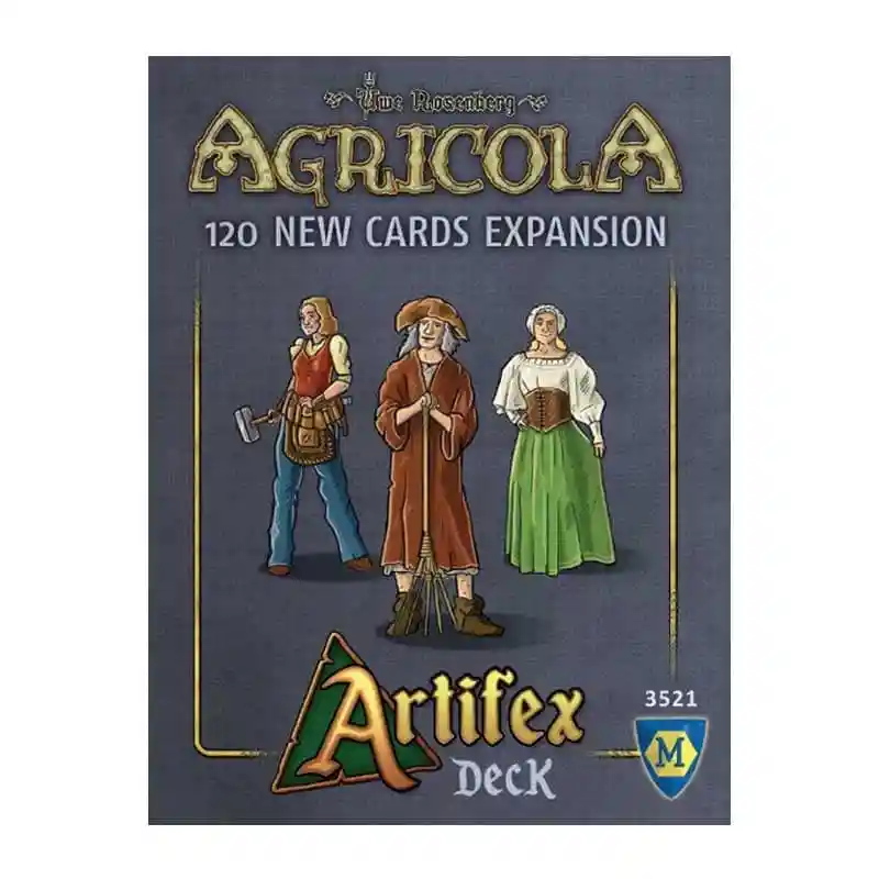 "Mejora tu juego de Agricola con esta interesante expasió con el que podrás añadir nuevas adquisiciones y oficios a tus partidas. ¡Nuevas estrategias y nuevas formas de afrontar tus partidas de uno de los juegos más aclamados de todos los tiempos,¡120 cartas nuevas para Agrícola! 60 adquisiciones menores y 60 Oficios nuevos que pueden jugarse de forma independiente o combinarse con otros mazos. Las reglas del juego básico no cambian, pero ten en cuenta la aclaración impresa en los laterales de la caja . Agricola es el juego clásico donde los jugadores asumen el papel de agricultores del siglo XVII y guían a sus familias a la riqueza, la salud y la prosperidad. Cada juego desafía a los jugadores a tomar diferentes opciones. Con una variedad de tarjetas de mejora, ocupación y acción mayores, no hay dos juegos iguales. El juego también se puede jugar solo. ¿Buscas más desafíos? Esta expansión se puede combinar con otras expansiones Agricola. estratégicas. Edad: 12+ años Jugadores: 1 – 4 jugadores Duración: 120+ minutos Dificultad: Intermedia Medidas: 10x13x2 centimetros. "