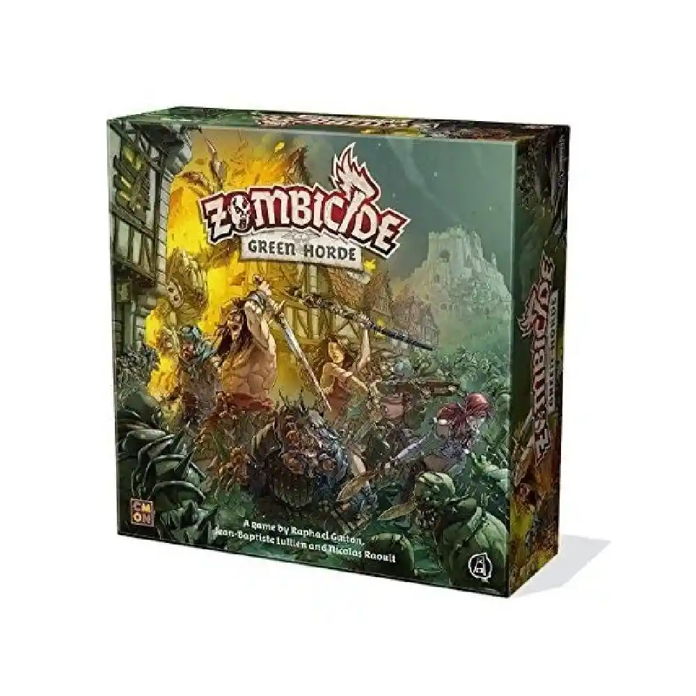 Zombicide: Green Horde es un juego de tablero cooperativo independiente para 1 a 6 jugadores. ¡Forma un equipo de fantasía con tus amigos y controla las habilidades de tus Supervivientes para conquistar la victoria contra hordas de orcos infectados! Los zombis están controlados por reglas sencillas y una baraja de cartas. Juega 10 misiones en 10 mapas distintos construidos a partir de los módulos de mapa que se incluyen, o crea tus propias misiones. Busca armas. Mata zombis. ¡Cuantos más zombis mates más hábil te volverás, y más zombis aparecerán!