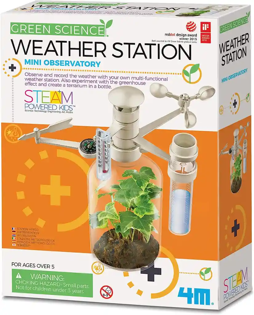 Empaque de regalo sin costo adicional, escríbenos al finalizar la compra. 8 años + Ciencia Verde - Estación Meteorológica" Con este emocionante juego, podrás observar y registrar el clima con tu propia estación meteorológica multifuncional. El kit incluye una variedad de herramientas, como una veleta y un anemómetro para medir la dirección y velocidad del viento, un termómetro para registrar la temperatura y un pluviómetro para medir la cantidad de lluvia. Además de la estación meteorológica, el juego te permite experimentar con el efecto invernadero. Podrás crear un fascinante terrario dentro de una botella y observar cómo se desarrolla un pequeño ecosistema en su interior. Aprende sobre el ciclo del agua, la importancia de la luz solar y cómo las plantas y los animales interactúan en un entorno cerrado. "Green Science - Weather Station" es una excelente manera de combinar diversión y aprendizaje sobre el clima y la ciencia ambiental. Conviértete en un científico del tiempo y descubre cómo funciona el mundo que nos rodea. ¡Observa, experimenta y aprende mientras te diviertes con este emocionante juego! Tamaño: 28 x 21 x 6cm