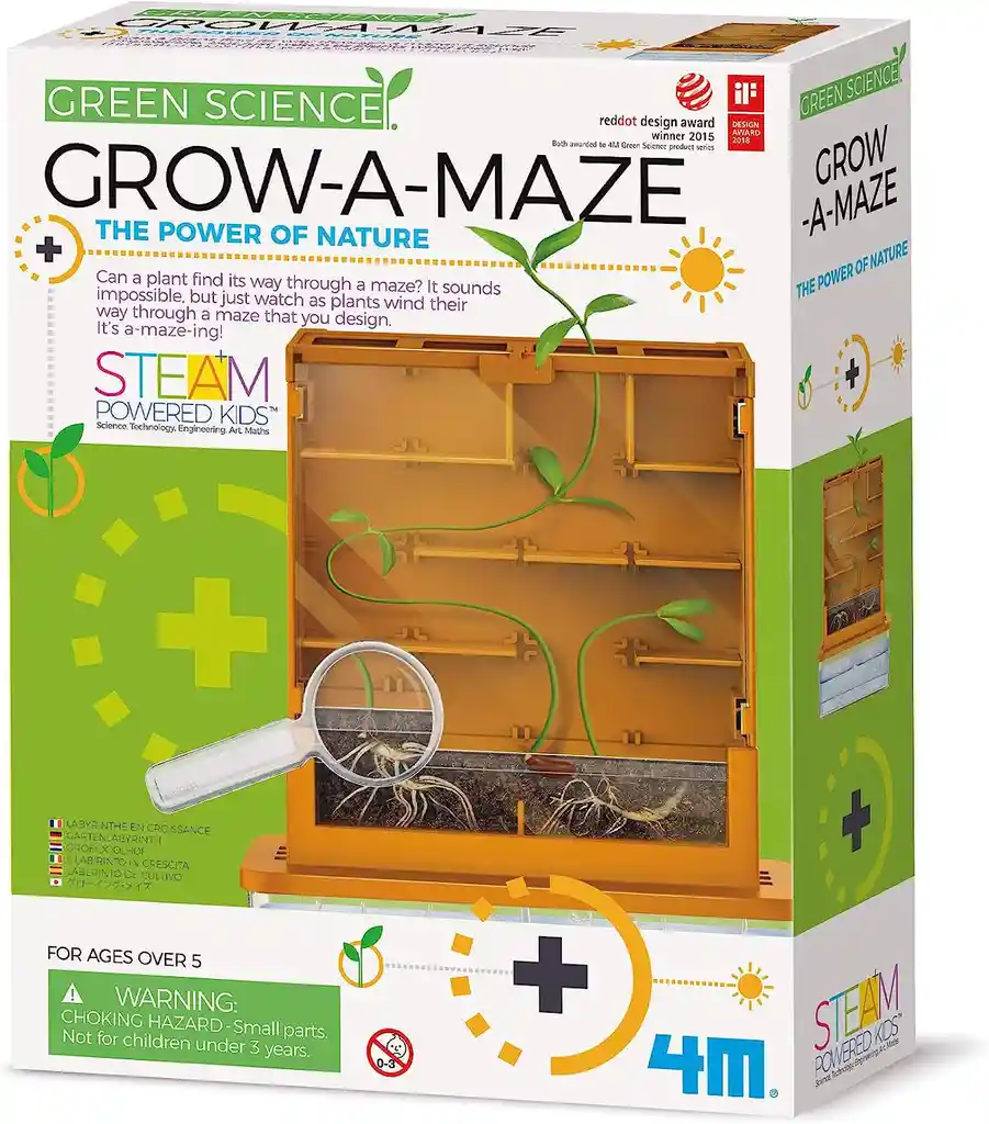 Empaque de regalo sin costo adicional, escríbenos al finalizar la compra. 8 años + ¡Descubre el increíble mundo de las plantas con Grow-A-Maze, el juego que te permite presenciar cómo las plantas se abren paso a través de un laberinto! ¿Alguna vez te has preguntado cómo una planta puede encontrar su camino en un entorno tan desafiante? Con este conjunto único, podrá observar de cerca cómo las plantas navegan a través de pasillos intrincados en busca de la salida. El contenedor de tierra transparente de Grow-A-Maze te brinda una vista privilegiada de la evolución de las raíces de las plantas. Mira cómo se ramifican y se extienden en su búsqueda de nutrientes, proporcionándote una visión fascinante del sistema de raíces de las plantas. Además, gracias a la lupa incluida, no te perderás ni el más mínimo detalle de este maravilloso proceso de crecimiento. Pero eso no es todo, con Grow-A-Maze también aprenderás sobre la importancia de la luz para las plantas. Descubre cómo las plantas buscan utilizar la luz solar para realizar la fotosíntesis y obtener los nutrientes necesarios para su crecimiento. A medida que las plantas encuentran su camino hacia la salida del laberinto, comprenderás mejor cómo interactúan con su entorno y cómo aprovechan la energía del sol para prosperar. Además de observar el crecimiento de las plantas en el laberinto, podrás realizar otros emocionantes experimentos. Cultiva diferentes legumbres y observa cómo se desarrolla, comprueba los efectos de la lluvia ácida en las plantas o incluso organiza una carrera de judías para ver cuál crece más rápido. ¡Las posibilidades son infinitas con Grow-A-Maze! Tamaño: 28 x 21 x 6cm