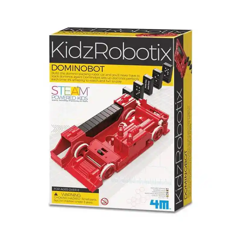 ¡Construye este auto robot que apila fichas de dominó y nunca más tendrás que apilar fichas de dominó! Dominobot configura fichas de dominó perfectamente cada vez. Es increíble de ver y divertido de jugar. Disfruta construyendo el Dominobot y conectando el circuito eléctrico. Luego pega todas las pegatinas en las fichas de dominó. Una vez que haya colocado las fichas de dominó y las haya visto caer, ¡puede jugar una o dos partidas de dominó! Incluye 24 fichas de dominó de peso ligero. Edades: 8 años en adelante Tamaño = 17 X 24 X 7 Centimetros