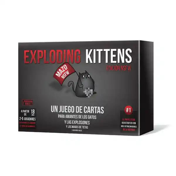 Se trata de una versión gatuna de la ruleta rusa con un gran componente estratégico. Los jugadores van robando cartas hasta que a alguien le sale un exploding kitten. Cuando esto sucede, esa persona muere y queda eliminada de la partida. El resto de cartas de la baraja sirven para cambiar de lugar, mitigar o evitar a los exploding kittens. Esta versión contiene las mismas mecánicas que la edición original, pero contiene ilustraciones demasiado horribles/increíbles como pararse incluidas en una versión apta para niños. Puedes jugar con esta versión de forma independiente o cambiarla con otros mazos para admitir a más jugadores. packing: Sin Packaging