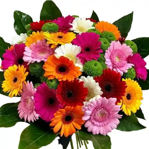 Bouquet multicolor de gerberas vibrantes, elaborado con flores frescas de alta calidad y un diseño profesional lleno de alegría y personalidad. Algunas flores pueden variar sutilmente según la temporada, manteniendo siempre la frescura, el estilo y el valor del arreglo. Incluye tarjeta personalizada sin costo para acompañar tu mensaje especial.