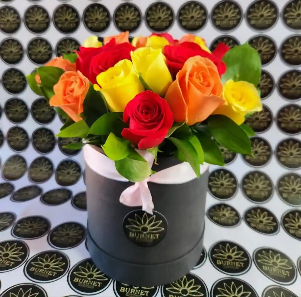 20 Rosas surtidas en caja redonda