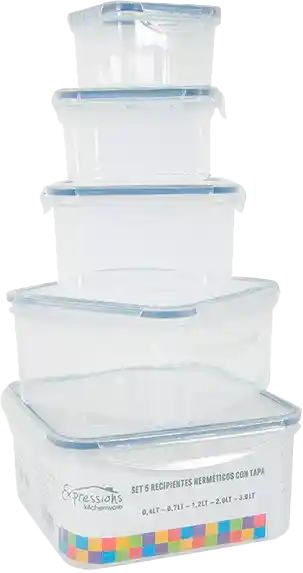 Expressions Home 5 Recipientes Con Tapa Cuadrados Plsticos Mb06