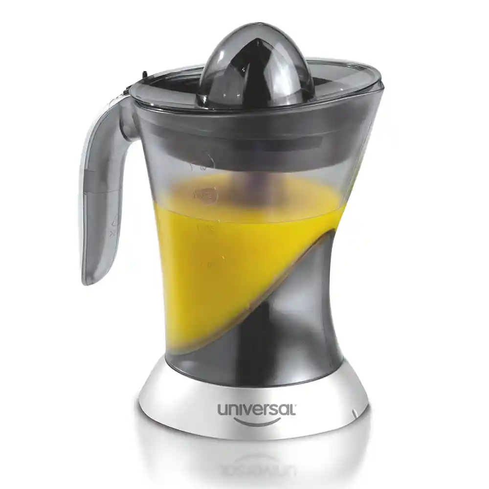 Exprimidor de Naranja / Cítricos Universal L83600 Adquiere en línea nuestro Exprimidor de cítricos y sorprende a tu familia cada mañana con jugo. • Potencia: 30 W. • Frecuencia: 60 Hz. • Voltaje: 110 -120 V • 2 conos para diferentes tamaños de cítricos. • Escurridor ajustable 5 posiciones. • Motor reversible. • Capacidad 1 Litro. Materiales de producto • Jarra: AS 20%. • Cuerpo, conos y escurridor : ABS 50%. • Sistema Eléctrico: 30%. Recomendación • Uso doméstico. • No sumergir en agua el cuerpo principal.