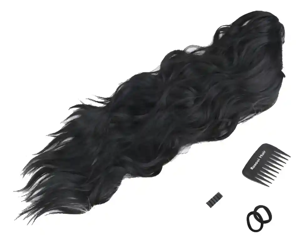 Extension Cola De Caballo Ondulado Negro 60cm Clip De Agarre Negro