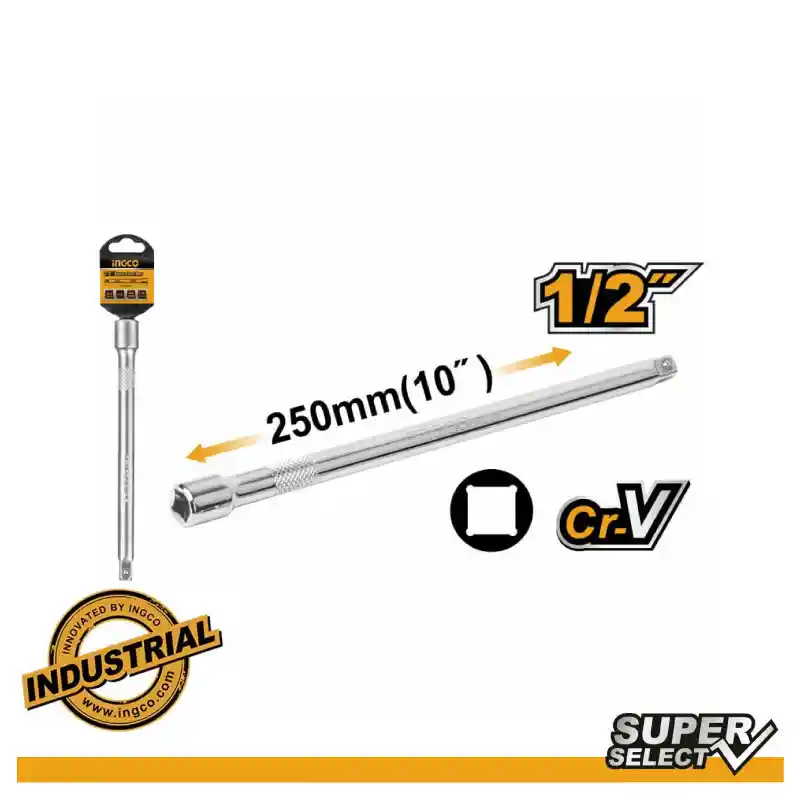 "Tienda Oficial de Repares S.A. - Todo en Ferretería EXTENSIÓN DE 1/2-10'' HEB12101 INGCO La extensión de 1/2-10'' HEB12101 de Ingco es una herramienta imprescindible para ampliar el alcance de tu llave de trinquete o trinquete de 1/2''. Con una longitud de 10 pulgadas, te brinda la flexibilidad necesaria para acceder a tuercas y pernos en espacios estrechos y difíciles de alcanzar. Fabricada con materiales de alta calidad, esta extensión garantiza durabilidad y resistencia, proporcionando un rendimiento confiable en cada tarea. Su diseño ergonómico y liviano facilita su manejo y reduce la fatiga durante el uso prolongado. Aumenta tu productividad y logra resultados precisos con la extensión HEB12101 de Ingco. Especificaciones Técnicas: 10"" (254 mm) Material: 40 Cr Tratamiento térmico Cromado RECUERDA: * Somos una empresa comercializadora de productos en líneas de Ferretería Liviana, Tornillería, Repuestos de Automotor, Elementos para la Seguridad y Construcción, Herramientas Agrícolas, Manuales y Eléctricas. * La mayoría de todos nuestros productos tienen garantía. * Todos nuestros productos son nuevos, nunca encontrarás artículos usados o desgastados, todos están en perfectas condiciones y el envío lleva un proceso de empaque adecuado. * Todos nuestros productos están en constante proceso de prueba de calidad por parte de nuestros proveedores. * Contamos con una excelente reputación de distribuidores ferreteros en distintas partes del país. * Encuéntranos o Contáctanos en nuestras redes sociales y pagina web. "