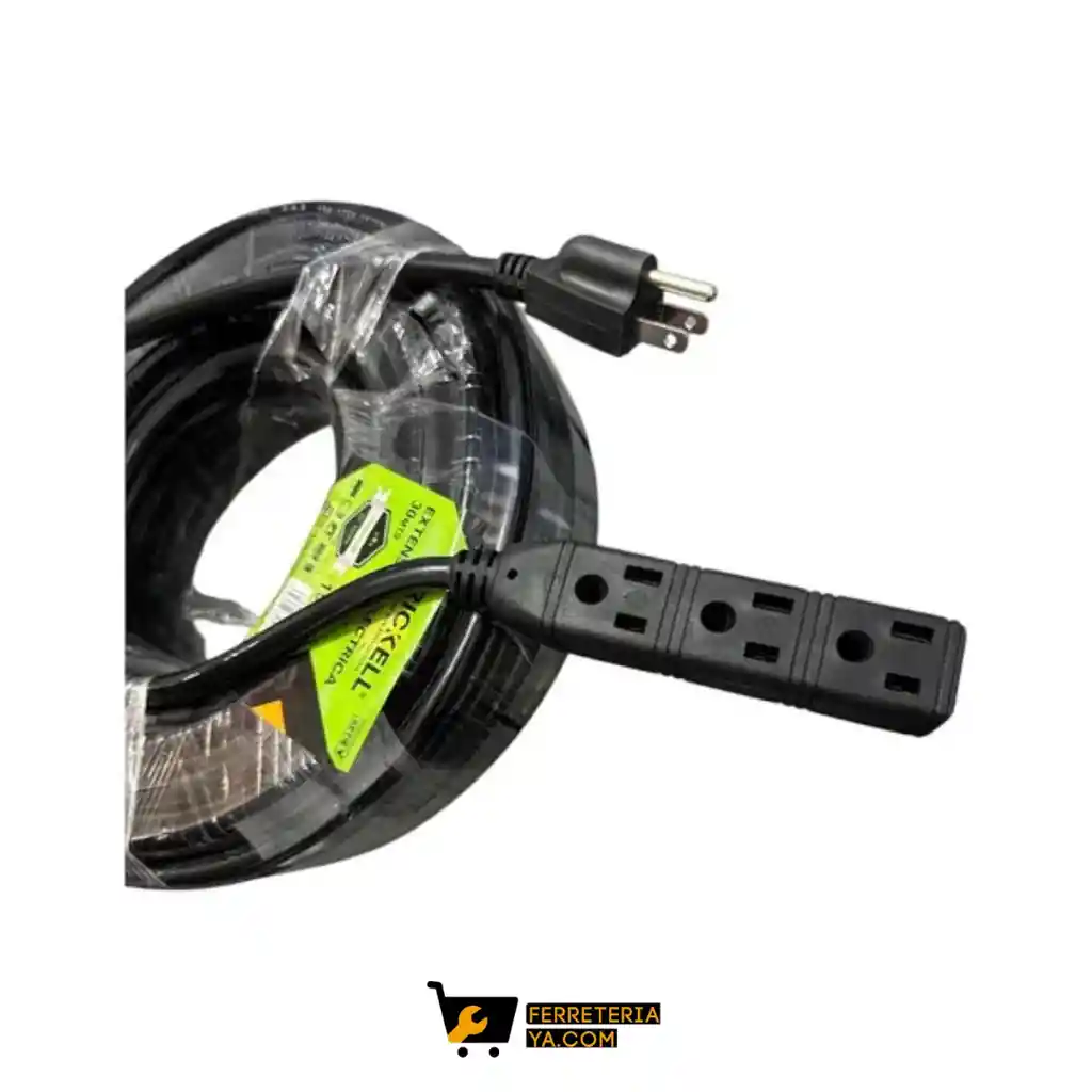 Largo del cable: 30 m Cantidad de tomas: 3 Voltaje: 110/220V Su frecuencia es de 50Hz/60Hz. Cuenta con una potencia de 1.875 kW. Enchufe tipo . Incluye los siguientes puertos y conectores: . Con protección contra sobrecarga. Con reducción de ruido eléctrico.
