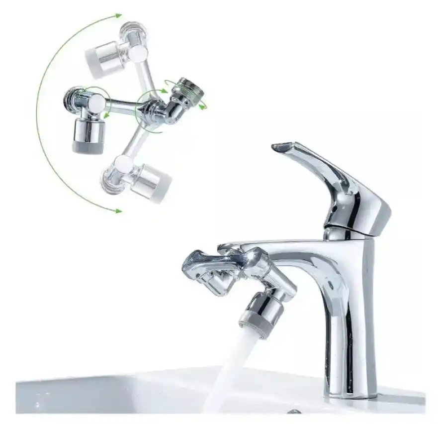 Extensor De Grifo Giratorio Cabezal Lavaplatos Lavamanos CARACTERISTICAS: * Rotación de 1080 grados para alcanzar todos los rincones del fregadero. * Ideal para la cocina y el baño: enjuaga verduras, frutas, platos, fregaderos, champú y más. * Diseño de doble función: transforma el flujo de burbujas suaves en un chorro potente. * Mejora la unidad del lavabo del baño como una solución todo en uno. * Fabricado en cobre sólido y ABS para durabilidad, libre de óxido para uso a largo plazo. * Filtro de grifo con válvula de junta tórica doble reforzada para evitar fugas. * Instalación Sencilla y Gran Compatibilidad DESCRICION: - Descubre la innovación en el lavabo con nuestra nueva extensión de aireador de grifo, equipada con un brazo giratorio de 1080 grados que se pliega y dobla a tu voluntad. Esta característica única permite que el flujo de agua alcance cada rincón del fregadero, facilitando así la tarea de lavado. - Modo de Salida de Agua Individual: Flujo de Burbujas Suave. Experimenta un suave flujo de burbujas que proporciona una presión de agua cómoda, evitando salpicaduras. Ideal para lavar a mano, enjuagar la boca o cuidadosamente lavar el rostro. - La instalación es rápida y fácil. Este innovador aireador se adapta al 99% de los grifos, reemplazando el aireador existente en cuestión de segundos. Compatible con roscas hembra de 0.945 in y macho de 20 a 0.866 in. Verifica la rosca de tu grifo para determinar si necesitas un adaptador. - El aireador giratorio de 1080 grados, con su brazo mejorado, se pliega para un fácil almacenamiento. Gira el grifo en cualquier dirección que desees, brindando mayor comodidad al lavar tu rostro o realizar gárgaras. ESPECIFICACIONES: * Material: Acero/ABS * Medidas: 9.5 x 5.5 x3.5 cm * Incluye: - Extensor Grifo - Empaques