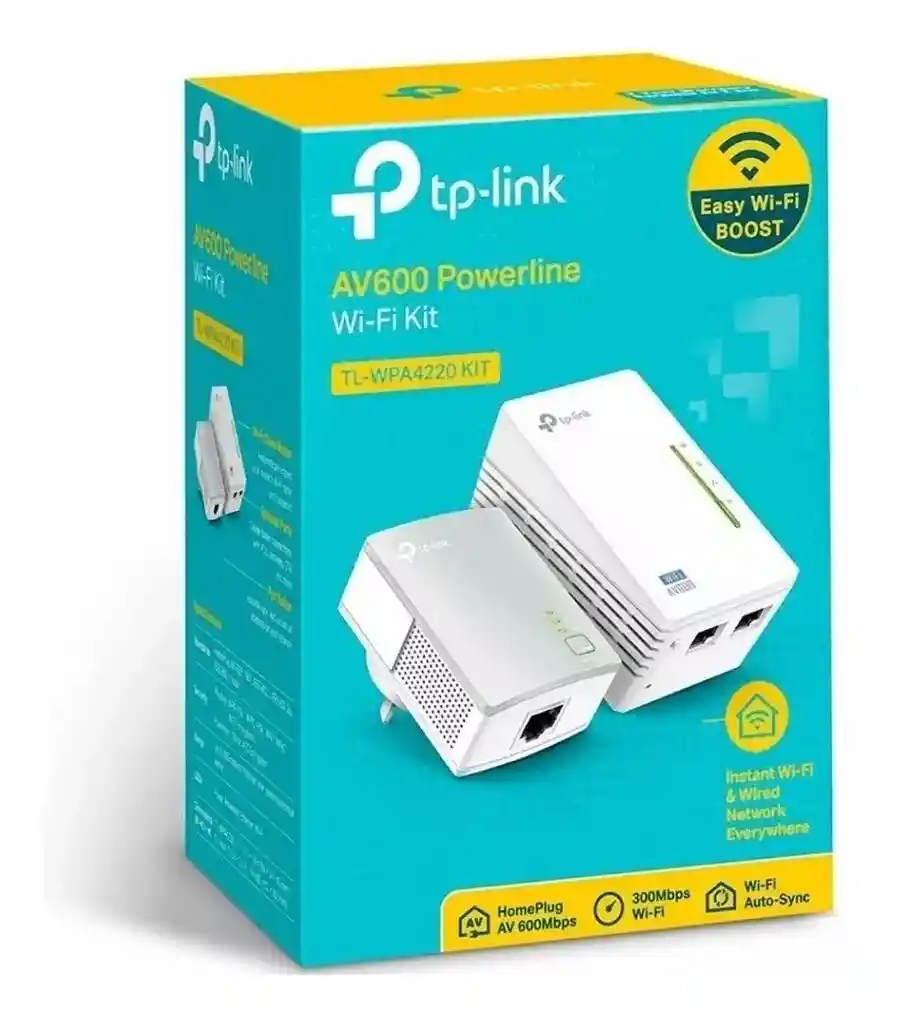 Extensor Powerline Wi-Fi 300Mbps AV500 Kit de Inicio - TL-WPA4220KIT Súper Extensión de Rango con un Sólo Toque – El botón “Wi-Fi Clone” simplifica su configuración Wi-Fi y ayuda a crear una red doméstica unificada sin interrupciones. Cumple con la norma HomePlug AV que proporciona velocidades de transferencia de datos a alta velocidad de hasta 500Mbps a través del cableado eléctrico existente de su casa, ideal para el streaming de video en HD ó 3D y juegos en línea sin retrasos. Extiende las conexiones inalámbricas de 300Mbps a las áreas más difíciles de acceder de su casa y oficina. Clonación Wi-Fi sin fisuras Copia automáticamente el nombre de red inalámbrica (SSID) y la contraseña de su router con sólo pulsar un botón. Después de pulsar el botón, se coloca el adaptador en cualquier lugar y disfrutar de las red sin fisuras en su casa u oficina. extensores de red Wi-Fi comunes Wi-Fi dondequiera que haya un tomacorriente Extensor de red Wi-Fi Powerline alámbrico e inalámbrico que lleva el Internet para su sótano, patio o en el desván. Sólo extensores de red Wi-Fi Tienen que ser colocados dentro de la cobertura Wi-Fi existente para recibir la señal Wi-Fi, las opciones de ubicación son limitadas. Powerline Cable de red Conexión Wi-Fi más rápida y estable Transmisión Powerline Mejor Wi-Fi Extensor de red Wi-Fi Powerline La señal de la red se transmite a través del cableado eléctrico de la casa con poca interferencia, para rápidas transmisiones Wi-Fi estables. Transmisión Wi-Fi Normal Wi-Fi Sólo extensores de red Wi-Fi Simplemente toma una señal Wi-Fi y reproducirlo, la calidad de la señal puede degradarse. Wi-Fi dondequiera que haya un tomacorriente Extensor de red Wi-Fi Powerline alámbrico e inalámbrico que lleva el Internet para su sótano, patio o en el desván. Sólo extensores de red Wi-Fi Tienen que ser colocados dentro de la cobertura Wi-Fi existente para recibir la señal Wi-Fi, las opciones de ubicación son limitadas. CARACTERÍSTICAS DE HARDWARE Tipo de Enchufe EU, UK, US, AR Estándares y Protocolos HomePlug AV, IEEE802.3, IEEE802.3u, IEEE802.11b/g/n Interfaz 2 Puertos Ethernet 10/100Mbps Botón Pair, Reset, Wi-Fi/Wi-Fi Clone Consumo de Energía Máximo: 7.608W (220V/50Hz) Típico: 7.216W (220V/50Hz) En Espera: 4.610W (220V/50Hz) Indicador LED PWR, PLC, ETH, Wi-Fi/Wi-Fi Clone Dimensiones (W X D X H) 3.7 x 2.1 x 1.6 pulg. (94×54×40mm) Rango 300 metros sobre el circuito eléctrico CARACTERÍSTICAS INALÁMBRICAS Frequency 2.4-2.4835GHz Signal Rate 11n: Hasta 300Mbps(dinámica) 11g: Hasta 54Mbps(dinámica) 11b: Hasta 11Mbps(dinámica) Reception Sensitivity 270M: -68dBm@10% PER 130M: -68dBm@10% PER 108M: -68dBm@10% PER 54M: -68dBm@10% PER 11M: -85dBm@8% PER 6M: -88dBm@10% PER 1M: -90dBm@8% PER Wireless Security 64/128-bit WEP / WPA / WPA2,WPA-PSK / WPA2-PSK Advanced Functions Habilitar / Deshabilitar Radio Inalámbrico ,WMM, Estadísticas Inalámbricas Transmission Power CE:20dBm(2.4GHz) FCC:30dBm CARACTERÍSTICAS DE SOFTWARE Modulation Technology OFDM (PLC) Encryption Powerline Security: 128-bit AES Wireless Security: WEP, WPA/WPA2, WPA-PSK/WPA2-PSK Encryption OTROS Certification CE, FCC, RoHS Contenido del paquete Adaptador Powerline Ethernet TL-WPA4220 & TL-PA4010 6.5 pies. (2 m) cable Ethernet (RJ45) CD de Instalación Guía de Instalación Rápida System Requirements Windows 2000/XP/2003/Vista, Windows 7/8, Mac, Linux Environment Temperatura de Funcionamiento: 0¿~40¿ (32¿~104¿) Temperatura de Almacenamiento: -40¿~70¿ (-40¿~158¿) Humedad de Funcionamiento: 10%~90% sin condensación Humedad de Almacenamiento: 5%~90% sin condensación Garantía de fábrica: 4 años
