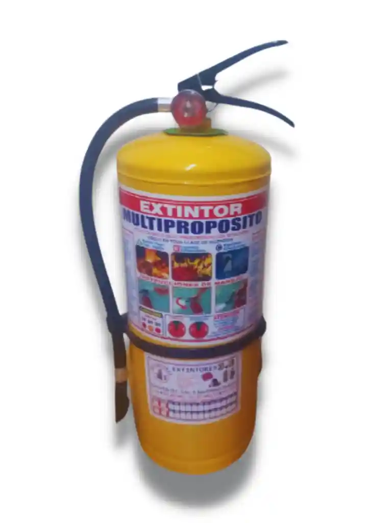 Extintor Multipropósito tipo ABC de 10 Libras con manguera Extintor multipropósito portátil polvo químico seco tipo ABC, para extinguir fuegos de clase ABC. A= Sólidos: Tela – Papel - Maderas B= Líquidos Inflamables – Combustibles – Grasas - Pinturas C= Equipos Eléctricos No es conductor eléctrico