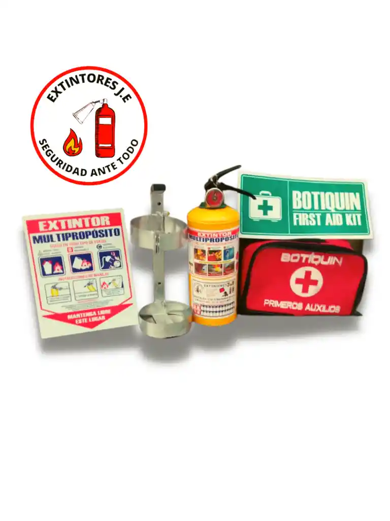 Extintor 5 Libras Abc + Señal + Soporte Canastilla + Botiquín Lona