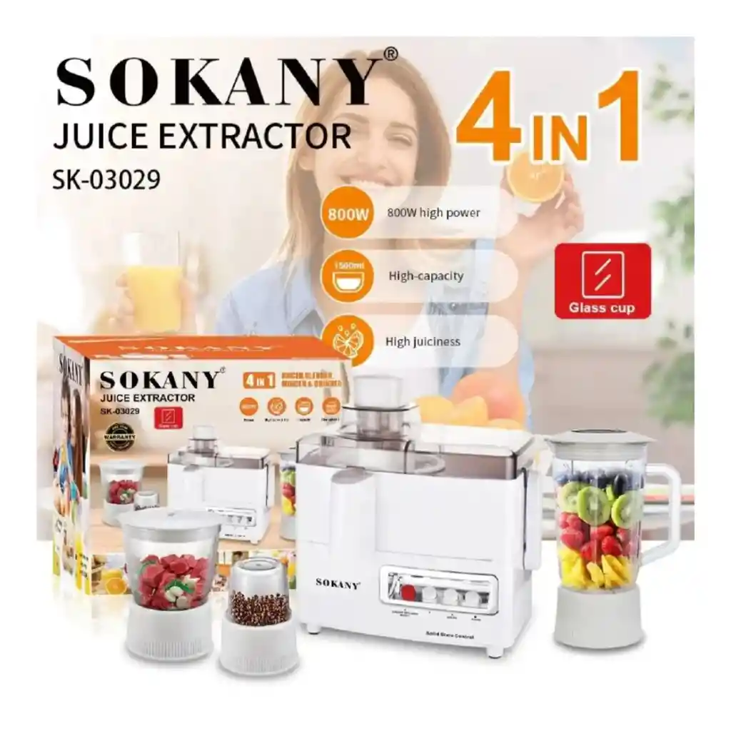 Descubre la versatilidad y potencia del extractor de jugo Sokany SK-03029, una solución 4 en 1 que simplificará tu vida en la cocina. Este electrodoméstico de alto rendimiento no solo extrae jugos frescos y nutritivos, sino que también funciona como licuadora, picadora y molinillo, permitiéndote preparar una amplia variedad de recetas con un solo aparato. Su motor de 800W garantiza resultados rápidos y eficientes, mientras que su sistema de seguridad con desconexión por sobrecalentamiento te brinda tranquilidad al usarlo. Potente motor de 800W para un rendimiento superior en todas sus funciones. Diseño 4 en 1: exprimidor, licuadora, picadora y molinillo, maximizando su utilidad en la cocina. Sistema de seguridad con protección contra sobrecarga y sobrecalentamiento, garantizando un uso seguro. Fácil de limpiar gracias a su diseño desmontable y materiales de alta calidad como el acero inoxidable en el filtro y las cuchillas. Capacidad de 1500ml ideal para preparar jugos y mezclas para toda la familia.