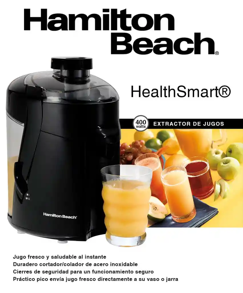 MARCA: HAMILTON BEACH MODELO 67801 Especificaciones * Potencia:350 W * Con contenedor de pulpa: Sí * Línea: Health Smart * Voltaje: 110V * Colores: negro
